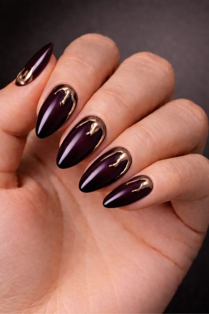 Dark Plum With Metallic Drip Design