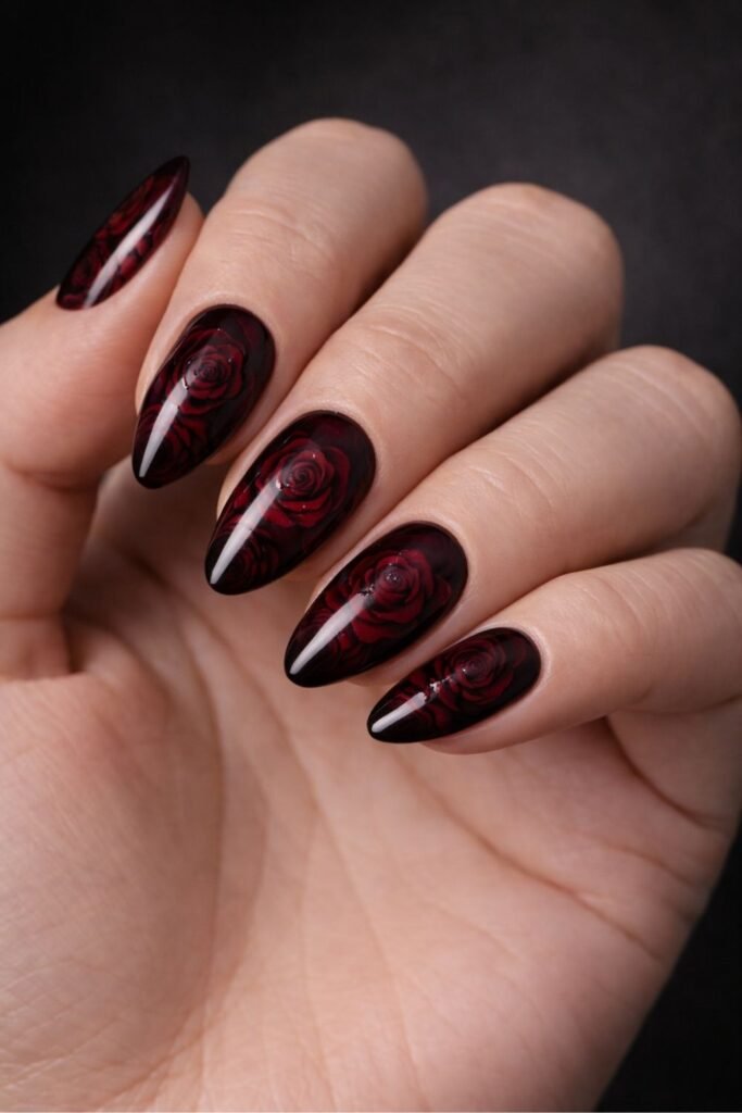 This design works beautifully for a gothic Valentine’s aesthetic. You’re not just wearing nail art—you’re displaying an emotional landscape on your fingertips that perfectly captures dark romance’s essence.