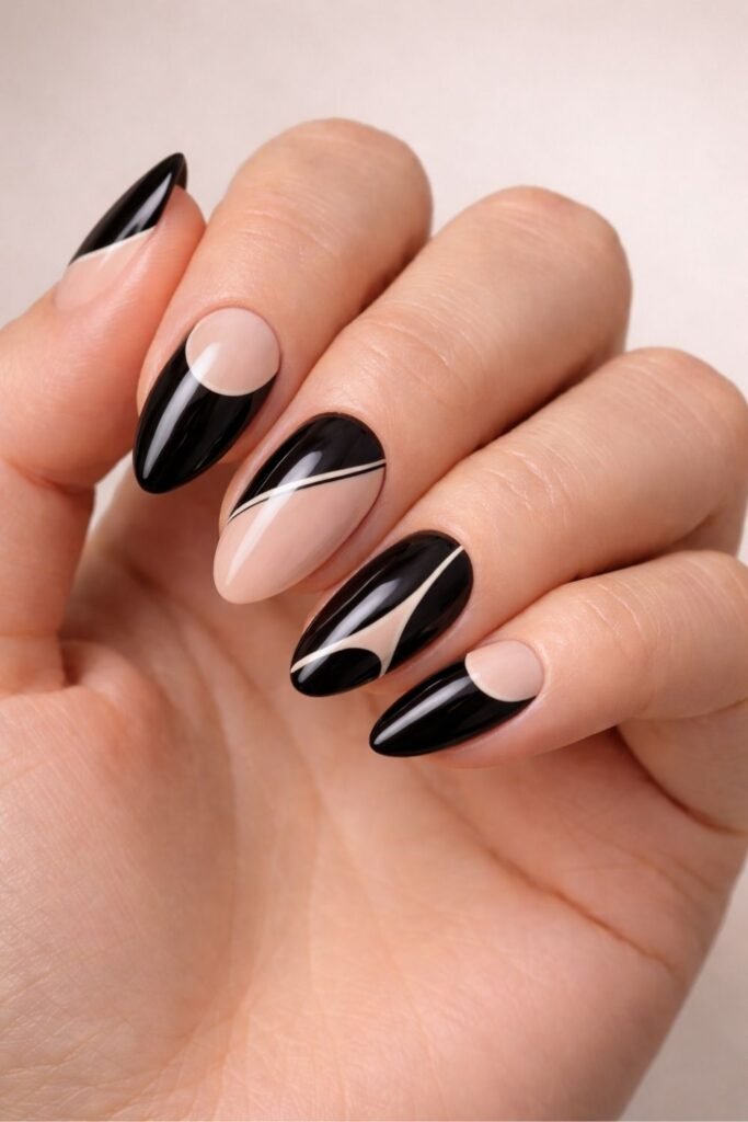 This design works beautifully on any nail length. The contrast between deep crimson and jet black evokes vampire aesthetics without feeling costume-like. You can keep the edges sharp for a modern look or soften them slightly for elegance.